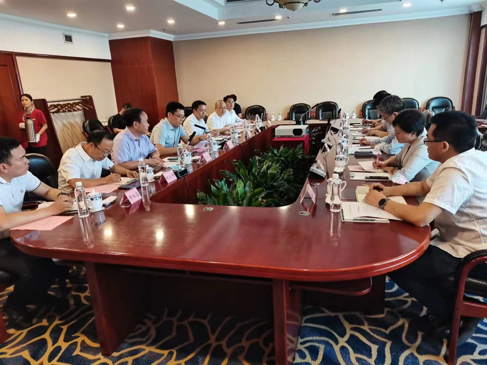 On August 18, Zhao Guo'ang and his delegation were warmly received by Li Zhiyu, member of the Standing Committee of Luzhou Municipal Committee and vice mayor of Municipal Government. At the meeting, the both sides exchanged views on the economic and social situation of Luzhou and the relevant situation of Poly Sinolight, as well as the views on engineering service and investment cooperation in the fields of liquor food, pulp and paper making, medical care, biopharmaceuticals, intelligent manufacturing, etc. Li Zhiyu stressed that the business of Poly Sinolight was highly consistent with the development direction of Luzhou, and hoped that both sides could pay visits frequently, strengthen exchanges, and continuously promote cooperation and mutual benefit & win-win results, to help both sides develop in a high-quality way. Zhao Guo'ang said that as a listed company affiliated to Poly Sinolight, China Haisum hoped to take this visit as an opportunity to establish a normalized exchange mechanism with Luzhou, and contribute Haisum's strength to the construction of world-class high-quality liquor industry cluster, and the cultivation of electronic information, green building materials, pulp and paper making and other matters in Luzhou.