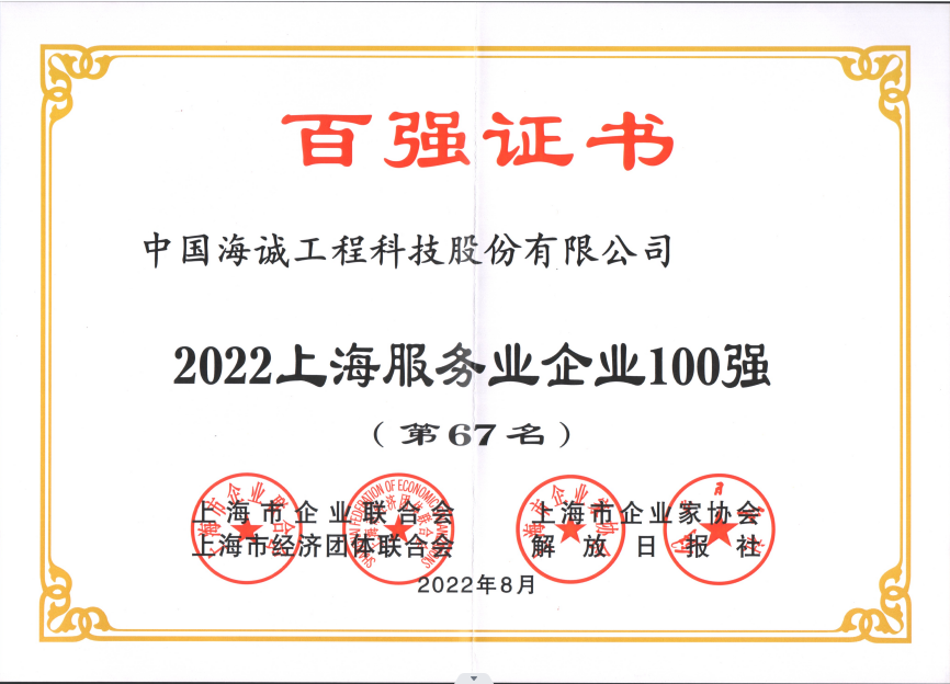 Recently, the List of 2022 Shanghai Top 100 Enterprises was released jointly by Shanghai Enterprise Confederation, Shanghai Entrepreneur Association, Shanghai Federation of Economic Organizations and Liberation Daily. With an operating income of RMB 5.265 billion, the Company was again listed in the "Top 100 Enterprises in Shanghai Service Industry", ranking 67th, up one place from the previous year. This is also the 11th consecutive time that the Company has been selected.