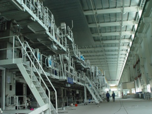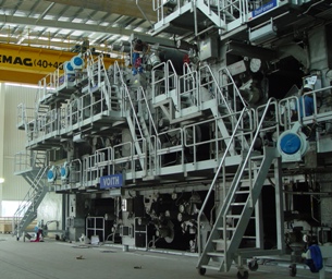 年產(chǎn)35萬噸牛皮箱板紙工程,主機由德國VOITH公司提供,該機是目前世界上同類型板紙機運行車速最快的。建設內(nèi)容有廢紙?zhí)幚怼⒃旒埻瓿杉拜o助設施等。